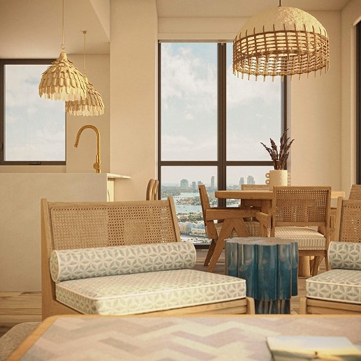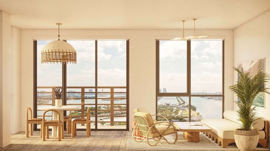Expansive windows framing Miami’s skyline and natural light